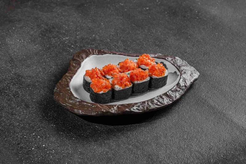 Если бы Красная Шапочка была роллом — она была бы алой Иккурой от лосося, дерзкой от васаби и слишком хороша, чтобы её спасали Состав: рис, нори, красная икра, зеленый лук, огурец, крем-чиз, лосось, васаби, имбирь, соевый соус.