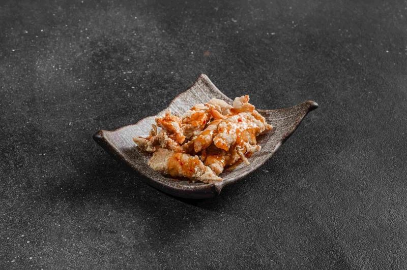 Курица канам — это гастрономический удар под дых, после которого ты захочешь встать и аплодировать. Состав: филе куриное, мука рисовая, сладкий чили соус, кунжут, лук.